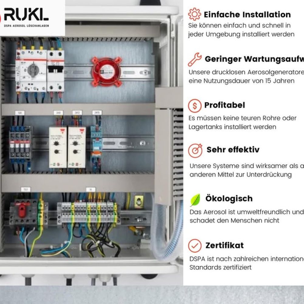 RUKL ist Generalimporteur von DSPA Aerosol Löschanlagen. Seit über 25 Jahren bietet DSPA außergewöhnliche Feuerlösch-Aerosolgeneratoren an. Unsere Kunden auf der ganzen Welt vertrauen unseren Aerosol-Brandbekämpfungssystemen aus zahlreichen Gründen.